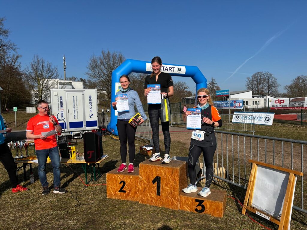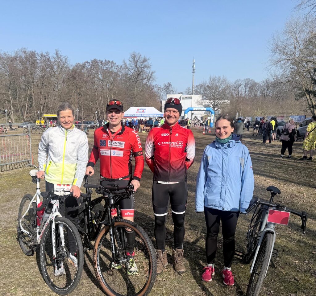 Am 7.3. fand die 23. Schlammschlacht in Osterburg/Altmark statt, wobei der Schlamm dieses Jahr leider gefehlt hat. Trotzdem gestaltete sich die profilierte Strecke des Crossduathlons als herausfordernd. Steile Anstiege hinter scharfen Kurven, Mulden und eine rutschige Blätterschicht erforderten eine hohe Konzentration aller Teilnehmenden. Mit Spray markierte Wurzlen werden vermutlich ein paar Stürze vom Rad verhindert haben. Silke, Thomas und Andreas sind im Hauptwettkampf antreten, Sanja im Jedermann. Alle haben den Wettkampg mit Erfolg abgeschlossen: Silke wurde Erste in ihrer Altersklasse, Thomas Zweiter, Andreas Dritter, Sanja Erste sowie 2. Platz der Frauen. Zum Abschluss wurde das obligatorische Stück Kuchen im Cafe bei strahlender Frühlingssonne genossen. Insgesamt ein sehr gelungener und gut organisierter Wettkampf in freundlicher Gesellschaft.